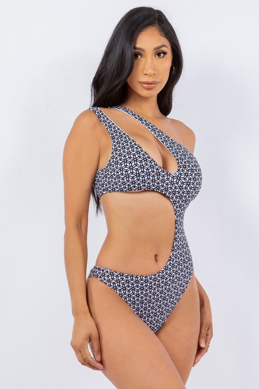 Geo Print One-Shoulder Cutout Monokini S-M-L 3 pcs 1 pack