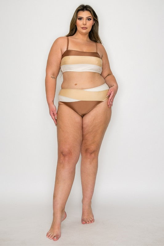 Plus Wide Stripe Tankini Set 1XL-4XL 4 pcs 1 pack